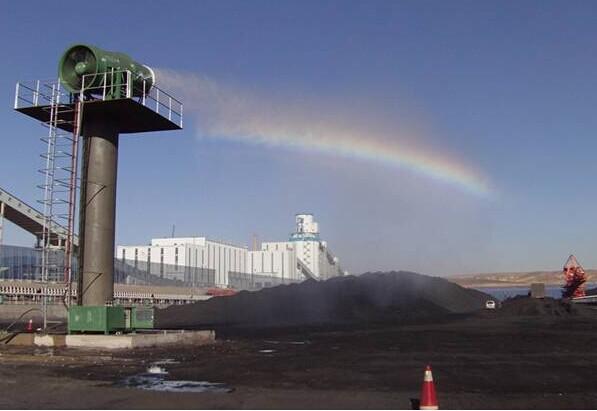 2、對容易引起塵埃的堆場噴水除塵時,噴出的霧粒細(xì)小、與飄起的塵埃接觸時,形成一種潮濕霧狀體,能快速將塵埃抑制降沉;